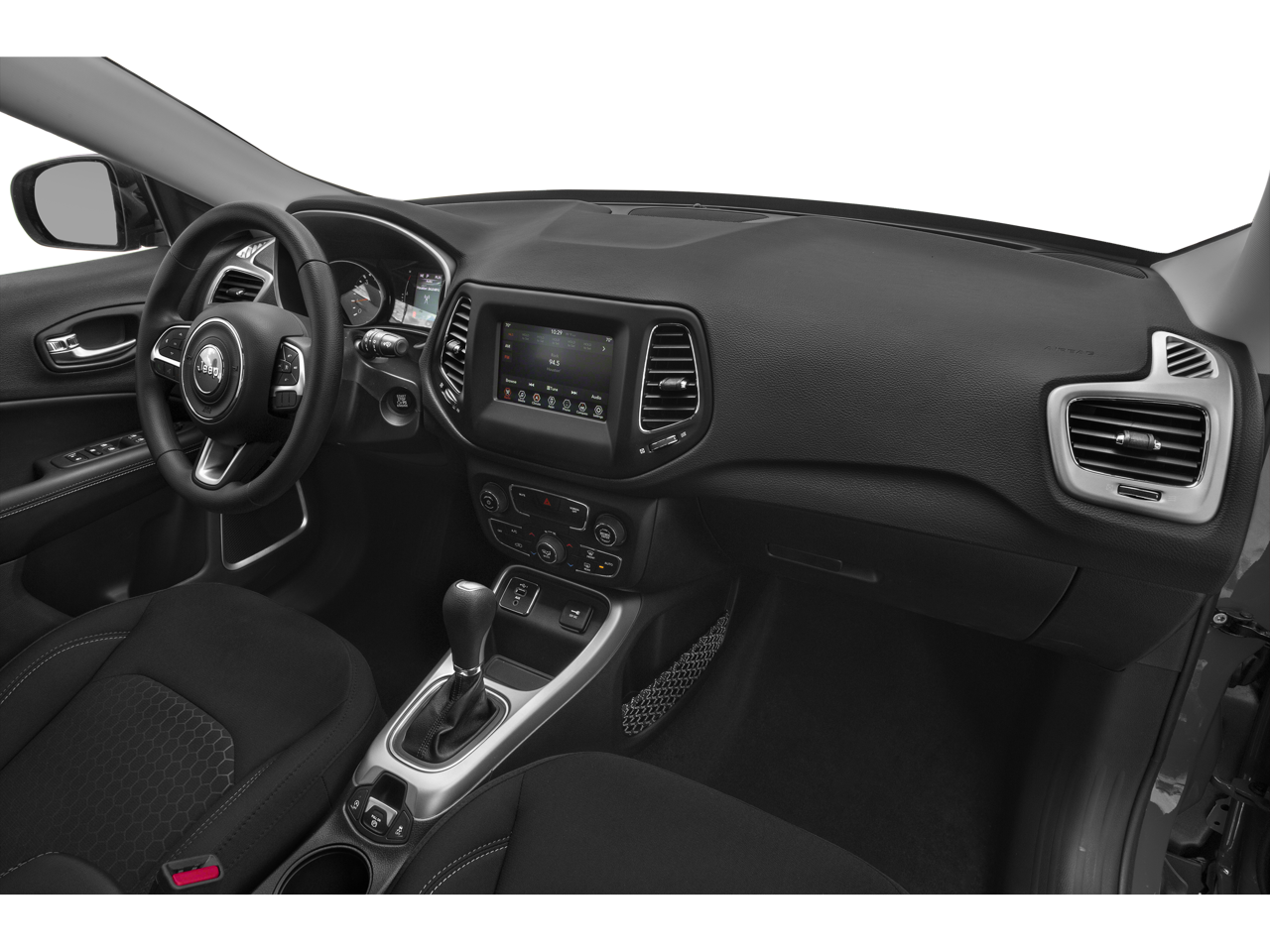 115V Auxiliary Power Outlet, 4-Way Power Lumbar Adjust, Black Day Light Opening Moldings, Black Grille w/Black Rings, Black Roof, Bright Exhaust Tip, Cluster 7.0 Color Driver Info Display, Front fog lights, Gloss Black Compass Badge, Gloss Black Fog Lamp Bezels, Gloss Black Jeep Badge, Gloss Black Lower Rear Fascia Valance, MOPAR Interior Premium Package, MOPAR Pedal Kit, ParkView Rear Back-Up Camera, Piano Black Interior Accents, Popular Equipment Group, Power 8-Way Driver/Manual 6-Way Passenger Seats, Quick Order Package 28B Altitude, Radio: Uconnect 4 w/7 Display, Remote keyless entry, Wheels: 18 x 7.0 Black Aluminum.