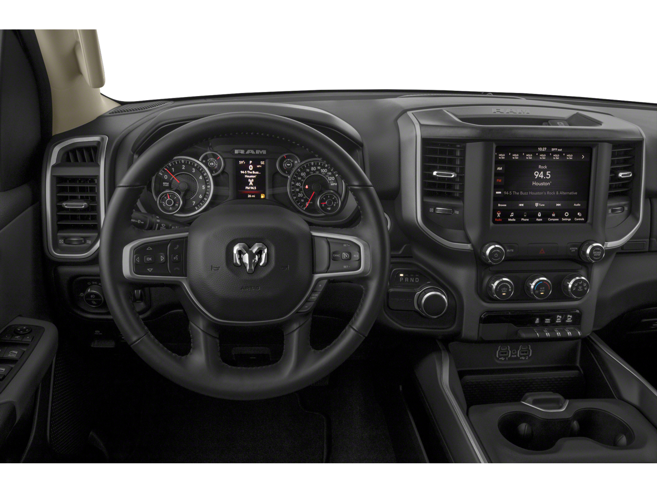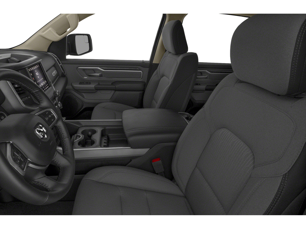 Inside the spacious cabin, youll find a perfect blend of practicality and modern technology. The Big Horn trim offers premium cloth seating, a large touchscreen infotainment system with Apple CarPlay and Android Auto, Bluetooth® connectivity, voice command, and multiple USB ports to keep you connected and entertained on every drive. With generous storage solutions and a roomy interior, this truck is designed to make both work and daily life easier.