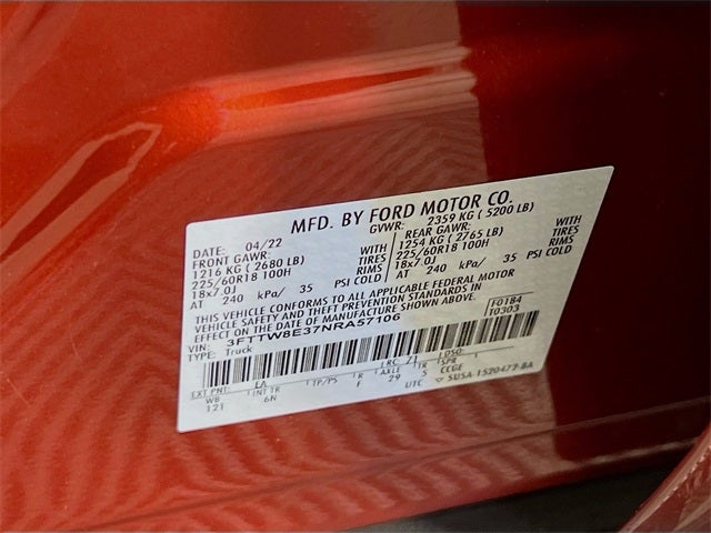 2.5L I-4 Hybrid, 4-Way Front Headrest, 400W Inverter w/USB Console Rear, Adaptive Cruise Control w/Stop & Go, BLIS Blind Spot Info System w/Cross-Traffic Alert, Equipment Group 500A Standard, Evasive Steering Assist, Exterior Parking Camera Rear, Ford Co-Pilot360, Heated Mirror, Heated Seats, Heated Steering Wheel, Lane Centering, Lane-Keeping System, Lariat Luxury Package, LED Box Lighting, Radio: B&O Sound System by Bang & Olufsen, Rear Parking Sensors, Remote Start System, Trailer Hitch Receiver w/4-Pin Connector, Wireless Charging Pad.