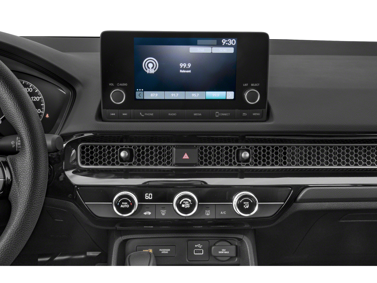 Step inside a cockpit designed to minimize distractions and maximize comfort. The interior features a stunning honeycomb mesh dash accent that elegantly hides the air vents, creating a clean, high-end feel.