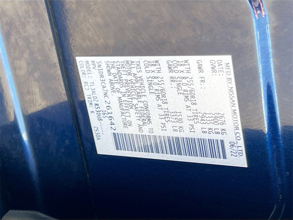 18 Machined Alloy Wheels, 3rd row seats: bench, Exterior Parking Camera Rear, Front fog lights, Heated Front Bucket Seats, Leather Seating Surfaces, Navigation system: NissanConnect Navigation, NissanConnect w/Navigation & Services, Power driver seat, Power Liftgate, Rear air conditioning.