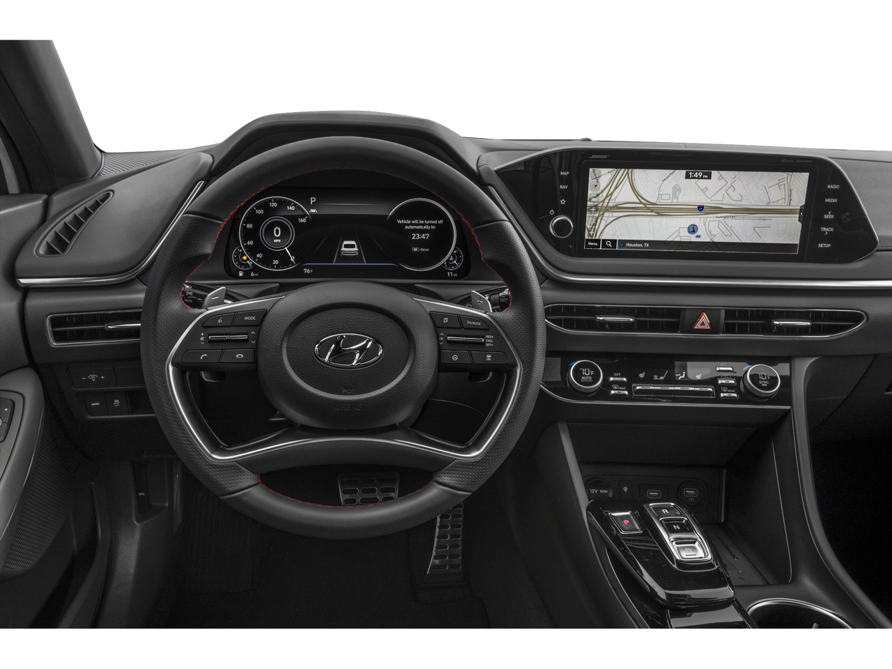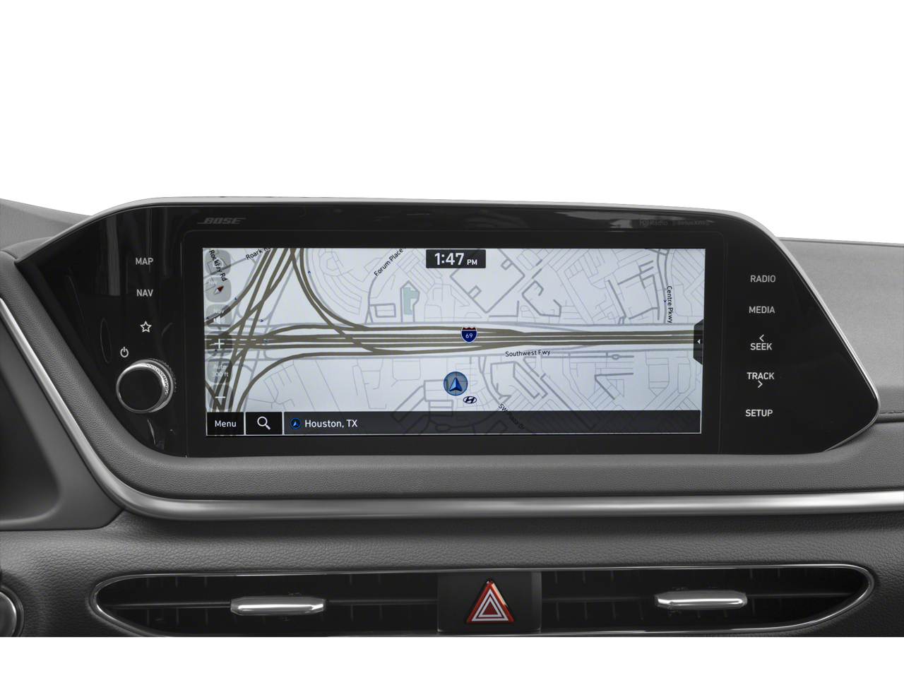 - Radio: AM/FM/MP3/HD/SiriusXM Display Audio w/Nav -inc: 10.25" color touchscreen, Bose premium audio w/12 speakers (1 center channel, 2 dash, 2 front tweeters, 4 door mounted, 2 rear mounted speakers plus 1 rear mounted subwoofer), dynamic voice recognition, integrated Bluetooth®, Blue Link connected car system, Apple CarPlay, Android Auto, USB, diversity antenna for navigation and HERE HD traffic