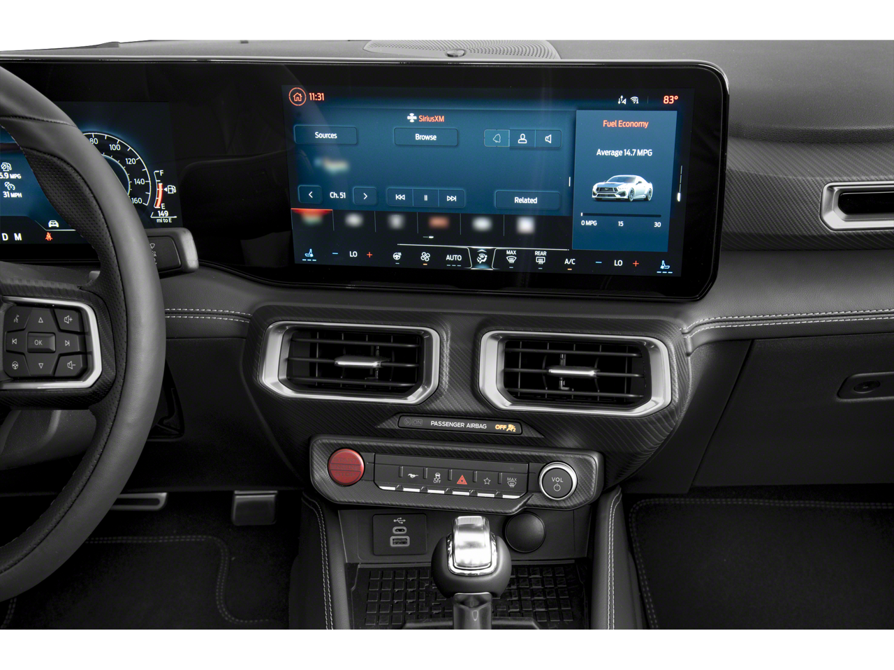 Immersive Digital Displays: A massive 13.2-inch center touchscreen running SYNC® 4 seamlessly flows into a 12.4-inch digital instrument cluster, customizable with vibrant graphics inspired by video games and classic Mustangs alike.