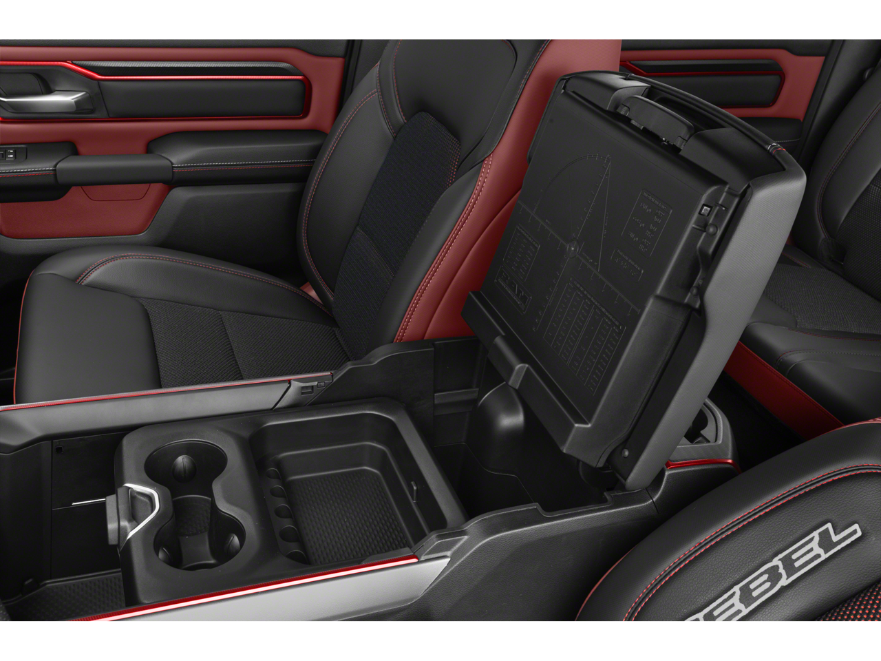 🪑 Luxury Meets Utility Interior – Rebel red stitching & premium materials.