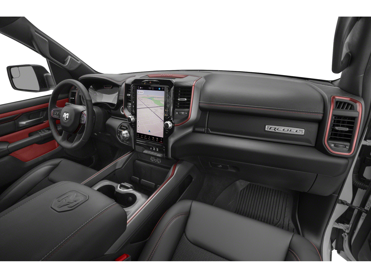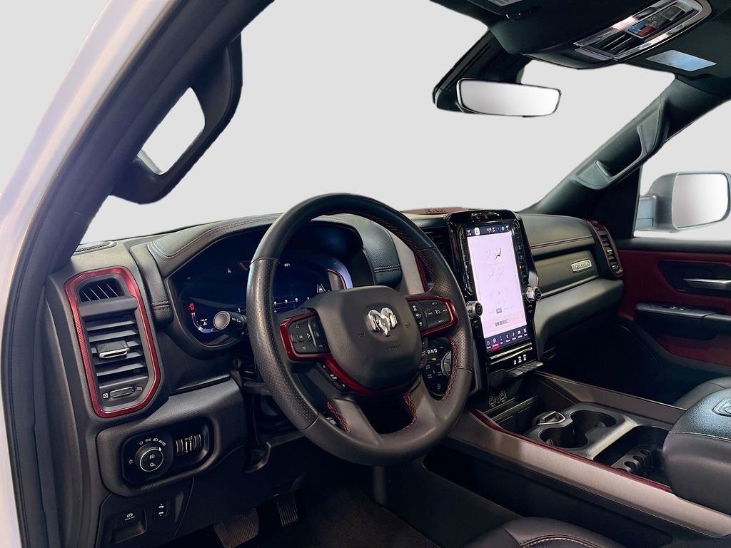 PREVIOUS DAILY RENTAL, 1500 Rebel, 4D Crew Cab, 3.0L I6, 8-Speed Automatic, 4WD, Bright White Clearcoat, Red/Black w/Lux Leather Trimmed Bucket Seats Or Cloth/Vinyl Bucket Seats, Auto Power-Folding Mirrors, Auto-Dimming Exterior Driver Mirror, Black Premium Power Mirrors, Convex Wide-Angle Exterior Mirror Insert, Exterior Mirrors Courtesy Lamps, Exterior Mirrors w/Heating Element, Exterior Mirrors w/Supplemental Signals, GPS Navigation, Navigation System, Power Adjustable Pedals, Quick Order Package 21W Rebel, Rear Window Defroster, Rebel Level 1 Equipment Group, Remote Tailgate Release, Wireless Charging Pad.